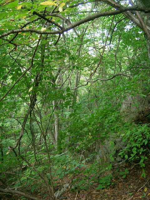 かなりの急斜面を木や下草につかまりながら、ゆっくりゆっくり下りました。