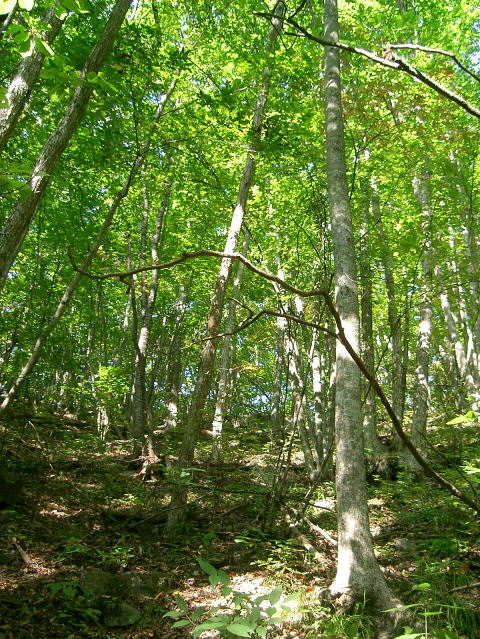 少しだけ確認出来た広葉樹の急斜面に気合で突入することにしました。