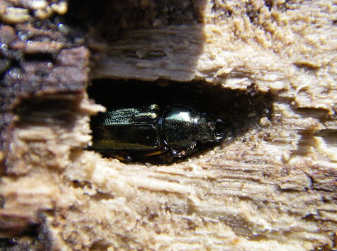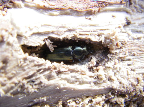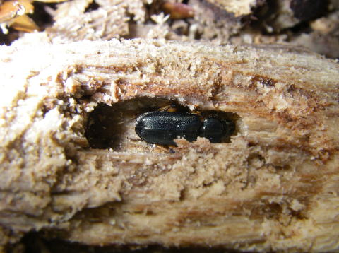 当初は尾根まで登る予定でしたが、5分ほど登ったあたり、ホソツヤは絶対厳しいと思っていた標高で直径5cm×長さ30cm位の落ち枝に(・)マーク!