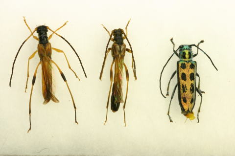 生態画像を撮ることは出来ませんでしたが、ホオノキの立ち枯れで、自身初採集の「フチグロヤツボシカミキリ(サペルディーニ)」をゲットすることが出来ました!