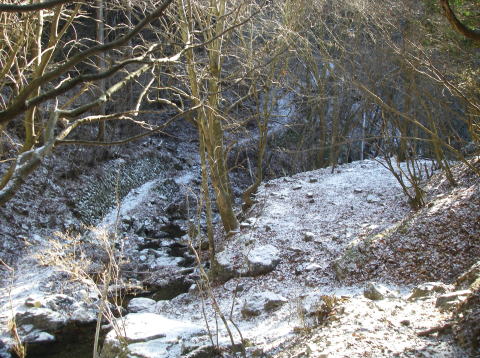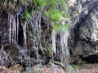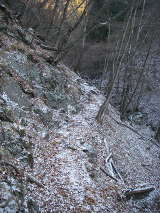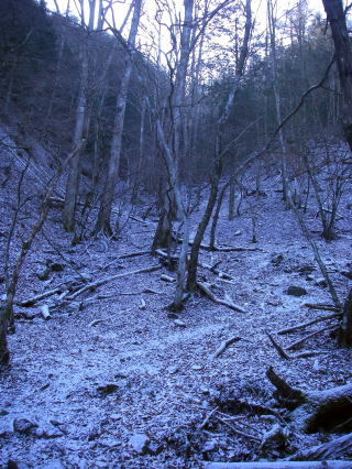 周辺を見ようと思ったものの、斜面は完全に凍結していて、材が動きません。