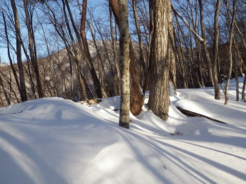 出来るだけ、積雪の少ないルートを歩こうとしますが、やがてラッセルするしかない状況に…。