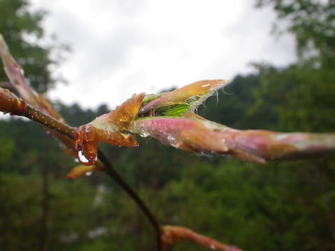 今シーズン初、トチノキの新芽に潜るコルリも確認!