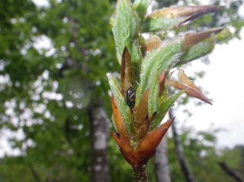 最初は雨の中の採集になりましたが、至る所のブナとトネリコの新芽にコルリがペアで付いている感じでした!