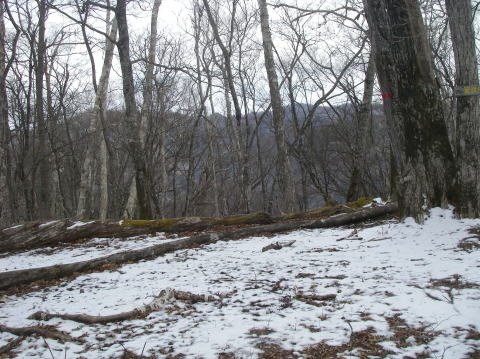 登ってみたら意外にも広い尾根の広葉樹林が続きました。